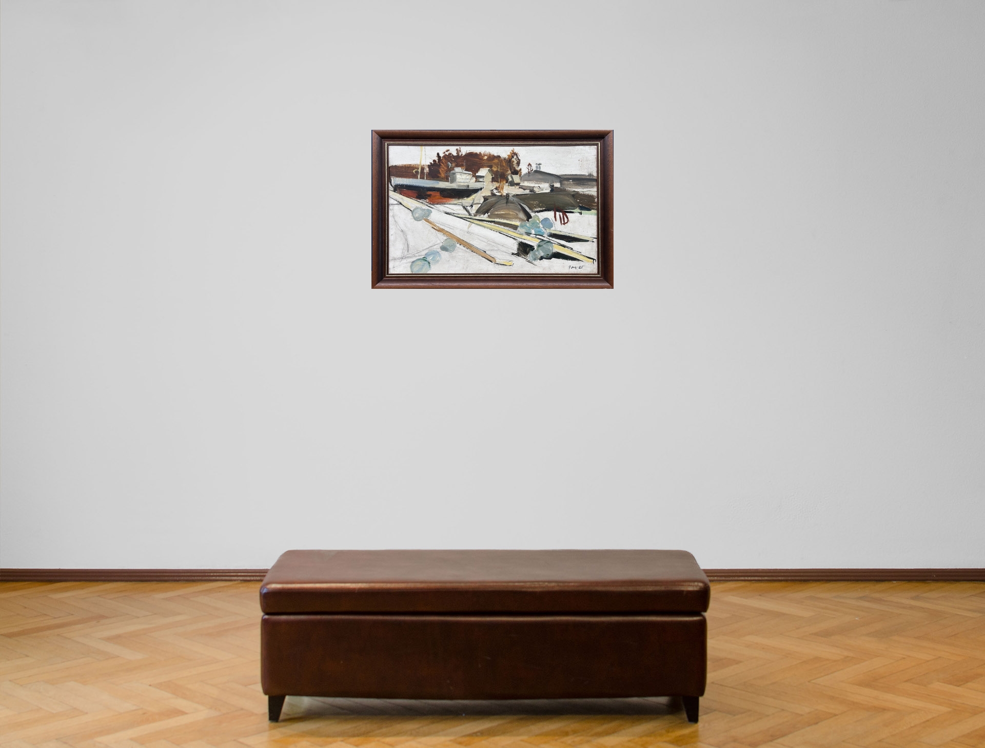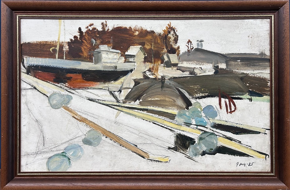 "At the Port", 1985, cardboard/oil, 49.5 x 79.5 cm