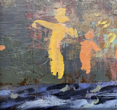 "Beach Scene", canvas/cardboard/oil, 38 x 45.5 cm