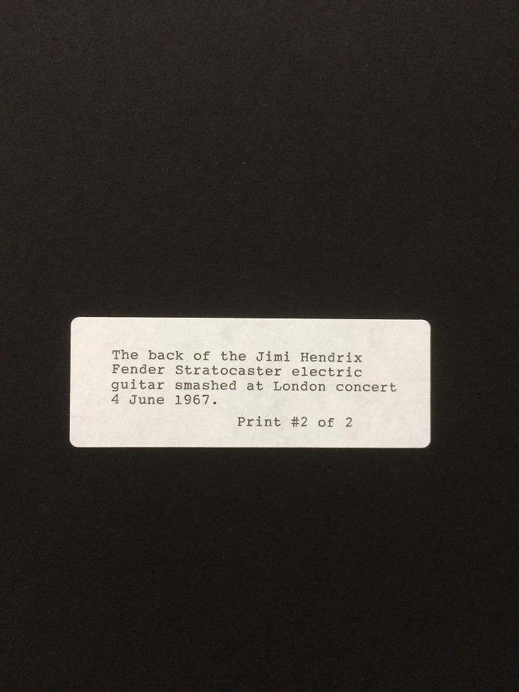 Photography, 27,5 x 22,5 cm. Fender Stratocaster electric guitar smashed at London concert (The Saville Theatre 4 June 1967) in front of Paul McCartney, amongst many others.