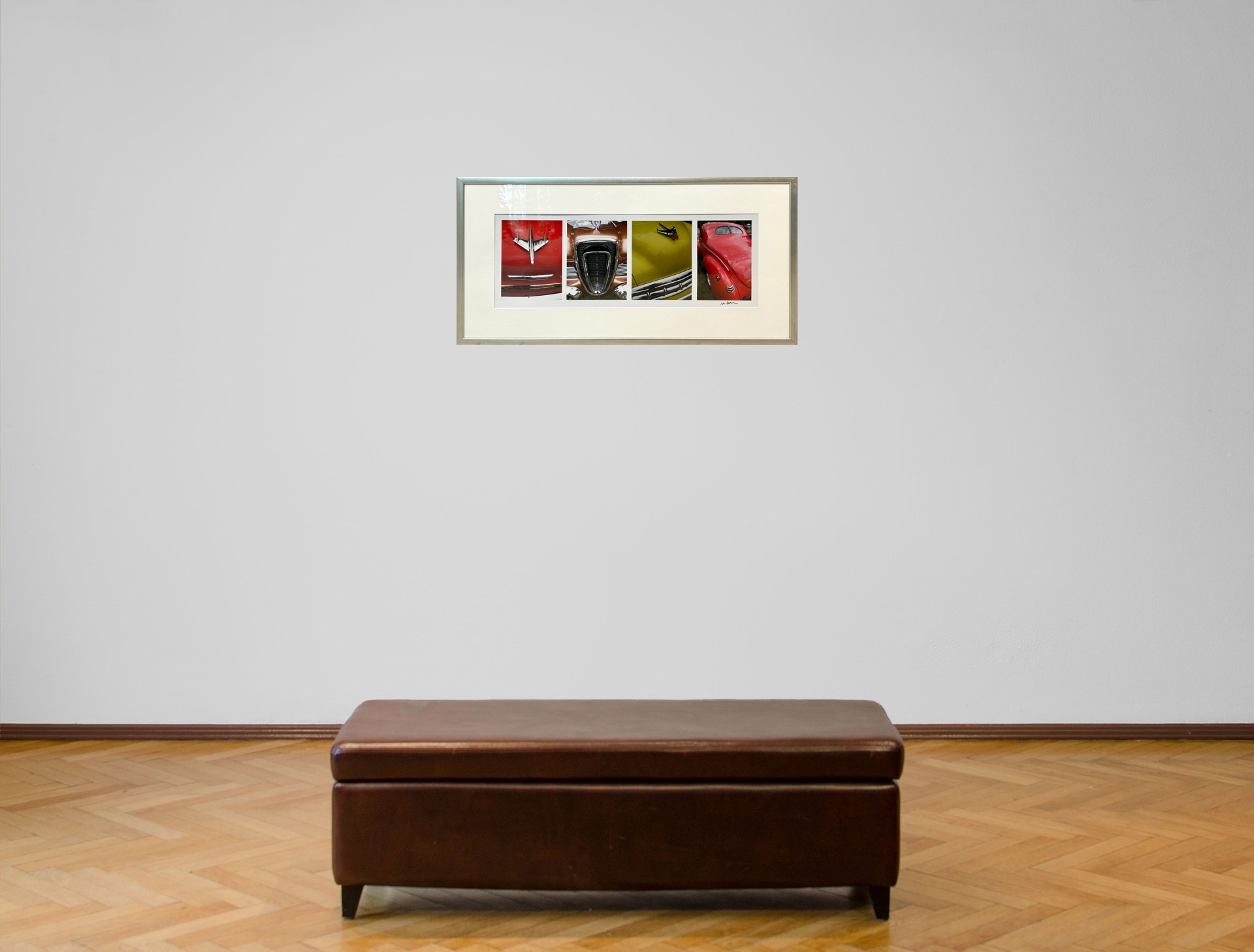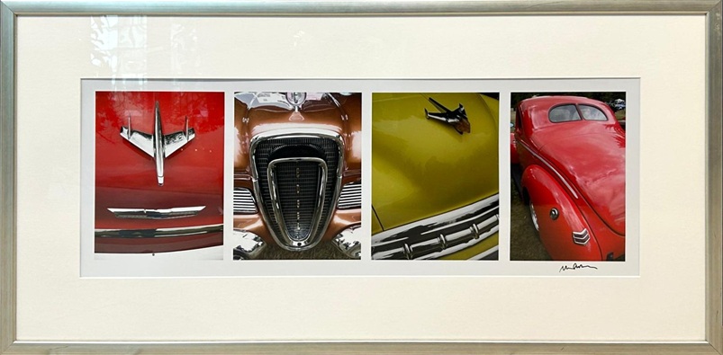 "Retro car II.", metallic paper, 30 x 90 cm, copy 2 of 2.Framed