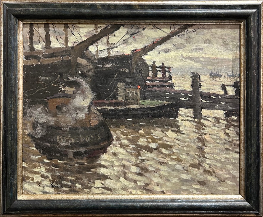 "Sailing Ships", 1926, cardboard, oil, 37x47 cm