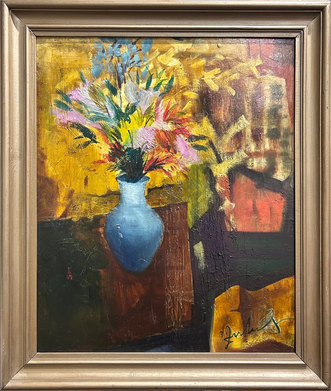 "Flowers in a blue vase", 1983, cardboard/oil, 69 x 57.5 cm
