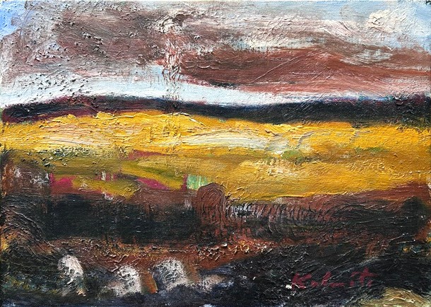"Tīrumi", 1987., audekls/kartons/eļļa, 25,5 x 35,5 cm
