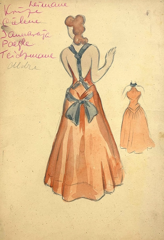 Kostīma mets, papīrs/zīmulis/akvarelis, 36,5 x 26 cm