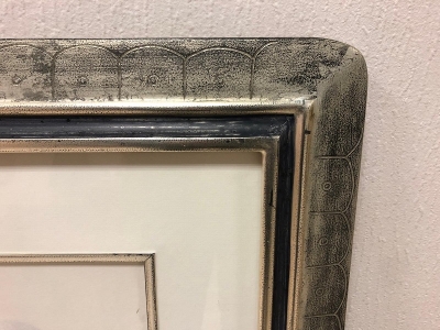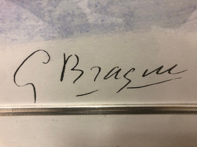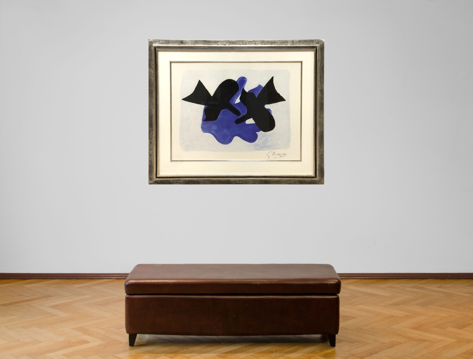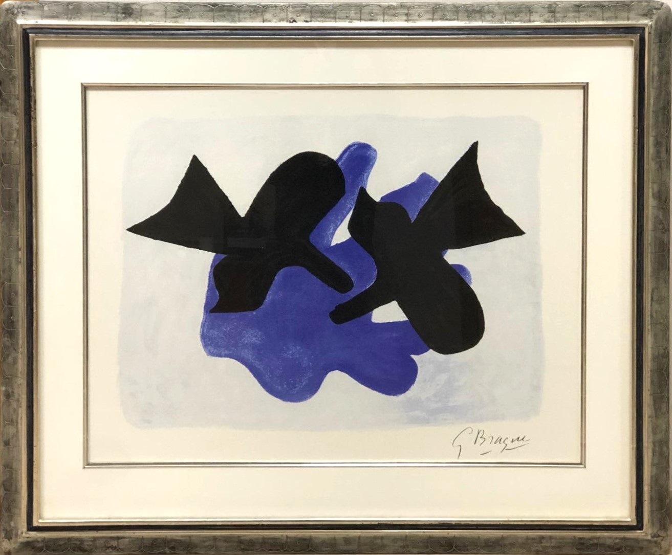 "Astre et L'oiseau", zīdspiedes druka, darba redzamā daļa ierāmējuma logā 78 x 98 cm, rāmis 115 x 133 cm.