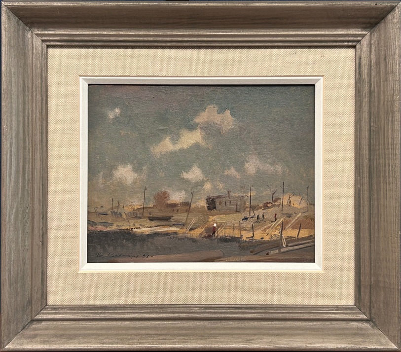 "Laivu piestātne",1943.,artons/eļļa. 16 x 21,2 cm