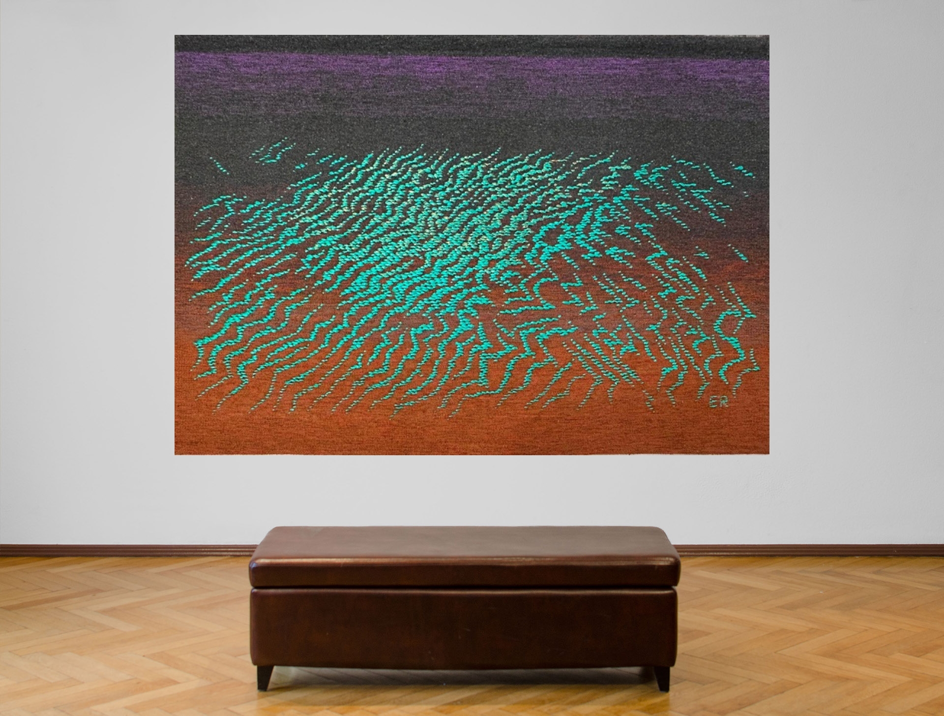 "Ziedošā jūra", 2021, vilna, lins, sintētika, 165 x 240cm