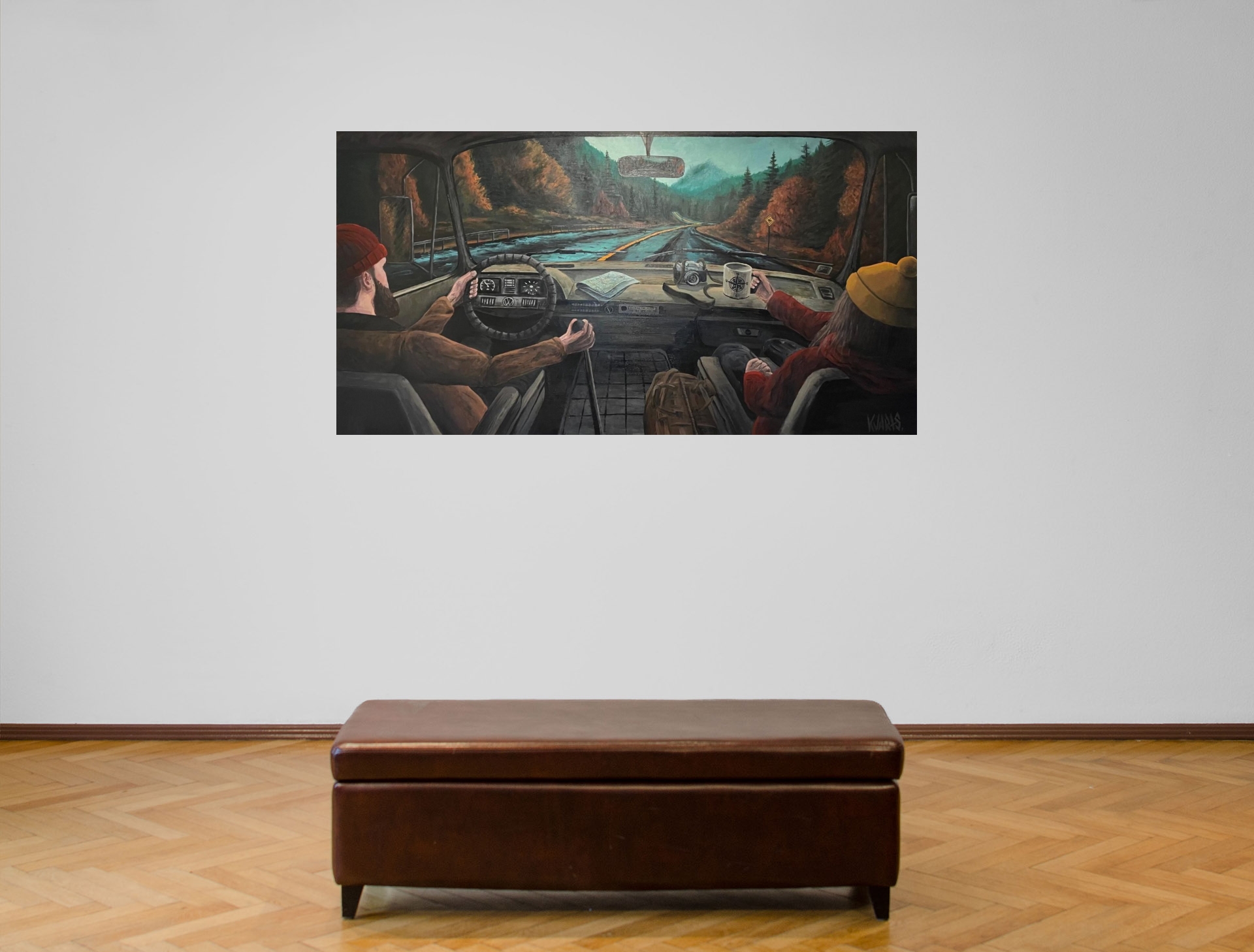 "Yellow line", 2023., finieris/akrils/autortehnika, 92 x 177 cm
